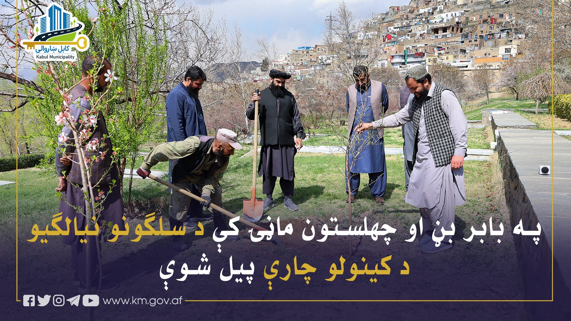 د کابل ښاروالۍ د کلتوري چارو ریاست د ښار د تاریخي او تفریحي سیمو د زرغونتیا او ښکلا په موخه، د بابر بڼ او چهلستون ماڼۍ په انګړونو کې د سلګونو مېوه لرونکو او زینتي نیالګیو د کینولو چارې پیل کړې.