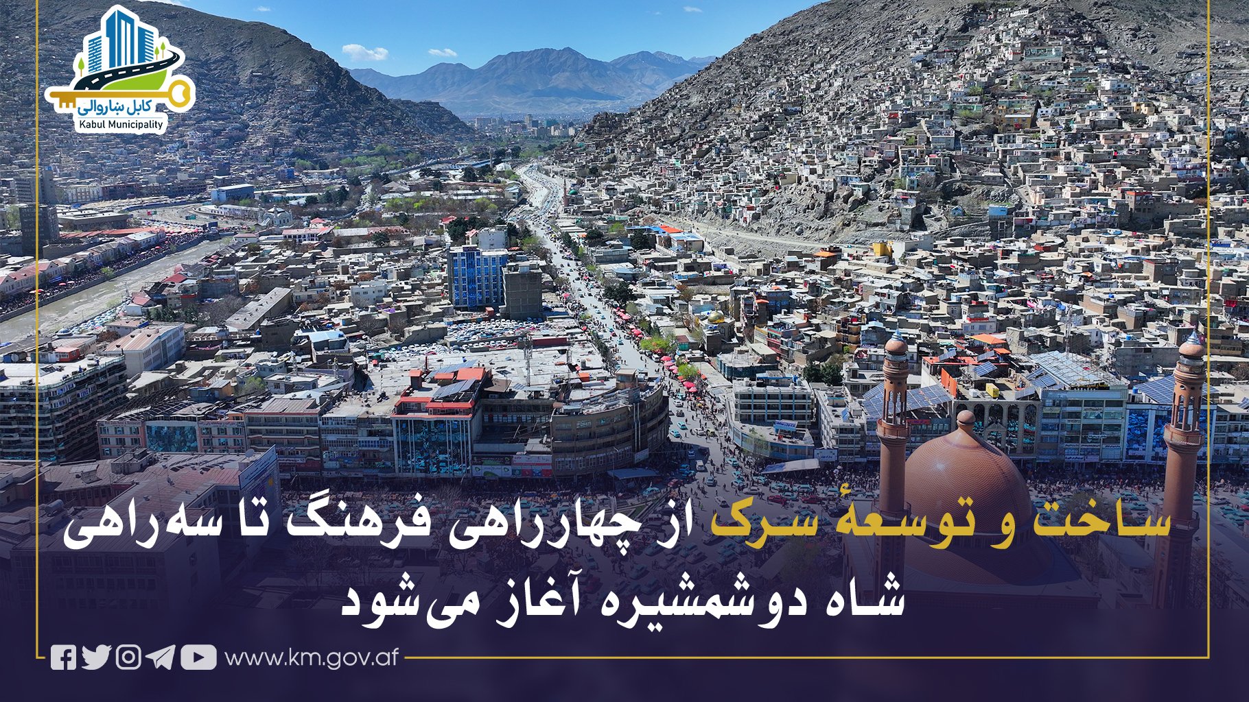 شاروالی کابل بهزودی کار ساخت و توسعهٔ سرک آسمایی را از چهارراهی سر زیرزمینی ساحهٔ دهافغانان (چهارراهی فرهنگ) الی سهراهی شاه دوشمشیره، واقع در ناحیهٔ دوم آغاز خواهد کرد.