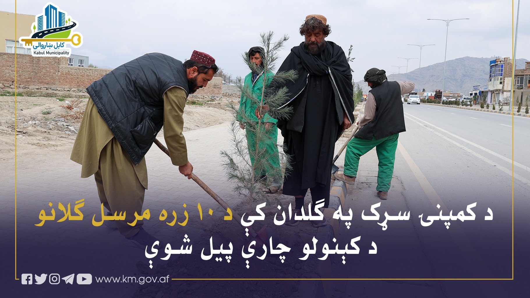 د کابل ښار د ښکلا او زرغونتیا په موخه، د کابل ښاروالۍ د زرغونتیا ریاست له خوا د پنځمې ناحیې اړوند د کمپنۍ سړک په ګلدان کې د ۱۰ زره مرسل ګلانو د کېنولو چارې پیل شوې.