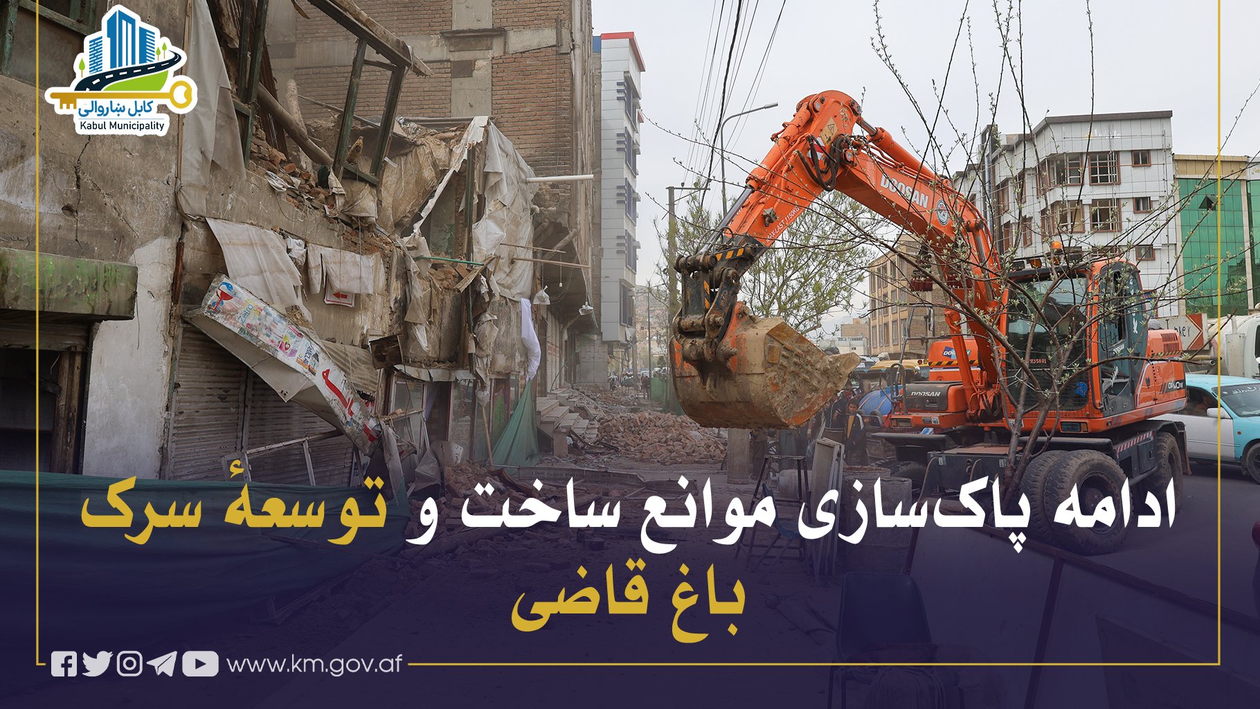 پاکسازی و برداشتن موانع در مسیر ساخت و توسعهٔ سرک باغ قاضی، از منار نجات الی شفاخانهٔ ابنسینا در مربوطات ناحیهٔ اول، از سوی شاروالی کابل با همکاری شهروندان این مسیر ادامه دارد تا زمینه برای آغاز امور ساختمانی سرک مذکور فراهم گردد.