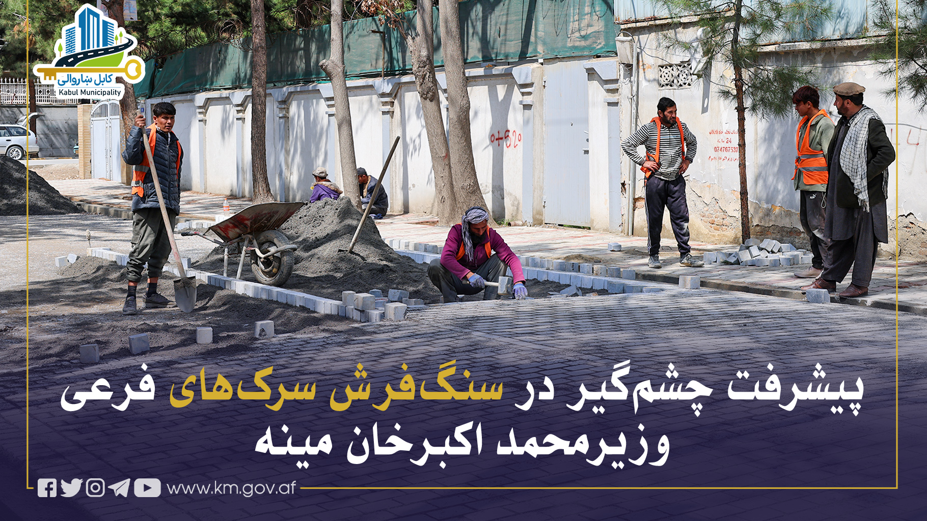 کار سنگفرش هفت سرک فرعی در مربوطات وزیرمحمد اکبرخان مینه و ساحهٔ شیرپور، مربوط ناحیهٔ دهم به ۶۰ درصد پیشرفت رسیده و روند تطبیق آن به گونهٔ دوامدار ادامه دارد.