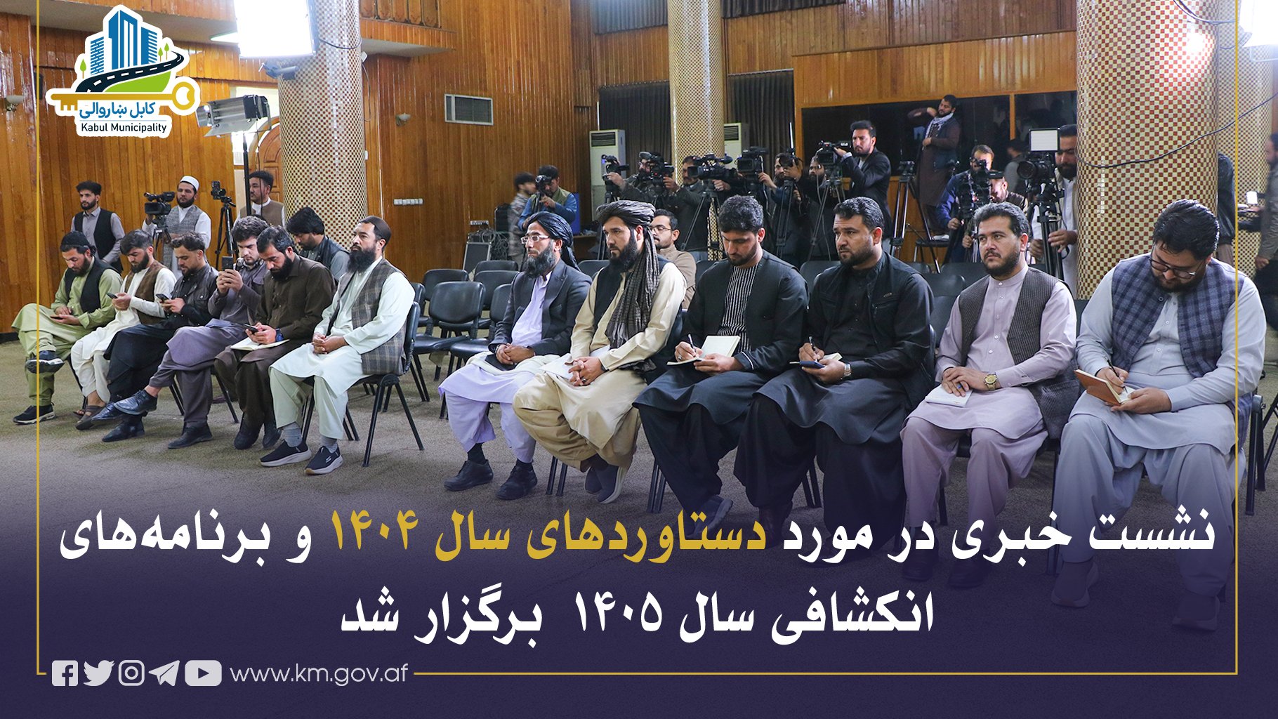 نشست خبری بهمنظور ارائهٔ گزارش دستاوردها و فعالیتهای سال ۱۴۰۴ و همچنان تشریح برنامههای انکشافی سال ۱۴۰۵ از سوی شاروالی کابل در مرکز اطلاعات و رسانههای حکومت برگزار شد.