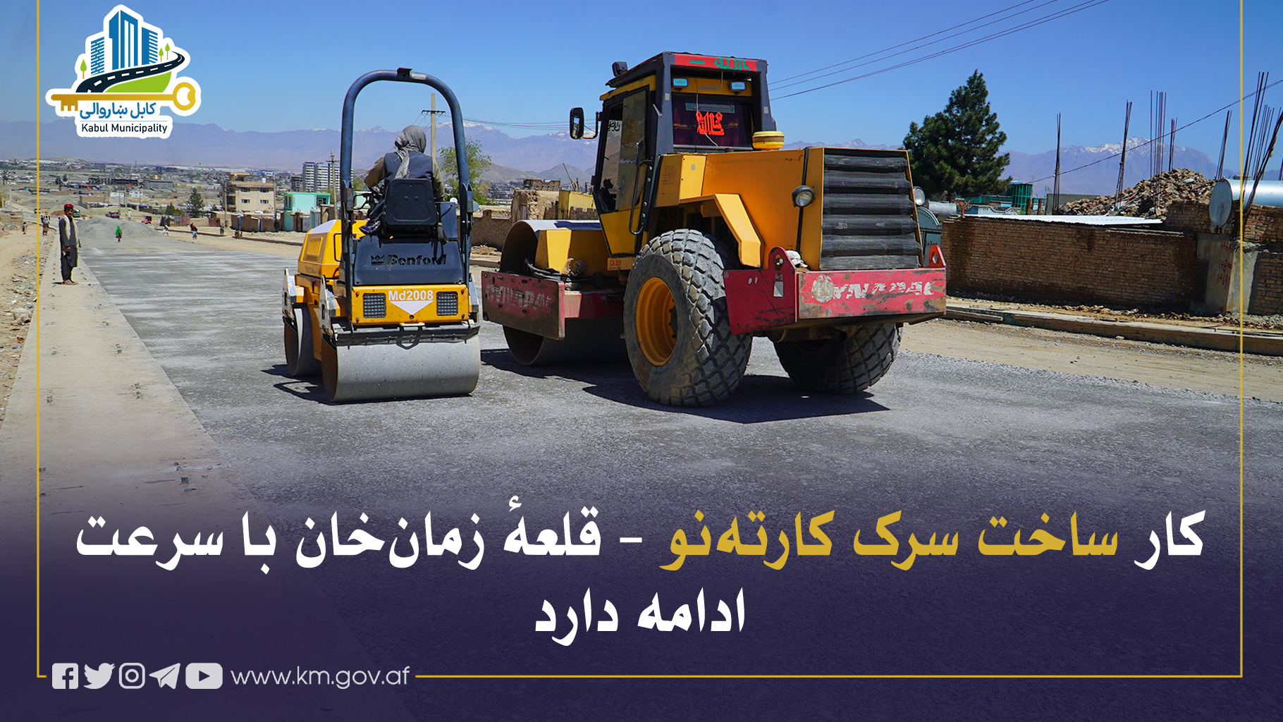 کار ساخت سرک جدید اتصالی کارتهنو که از ساحهٔ شرکت آبرسانی آغاز و تا سرک عمومی قلعهٔ زمانخان امتداد مییابد، در مربوطات نواحی هشتم و شانزدهم با پیشرفت قابل ملاحظهای ادامه دارد.