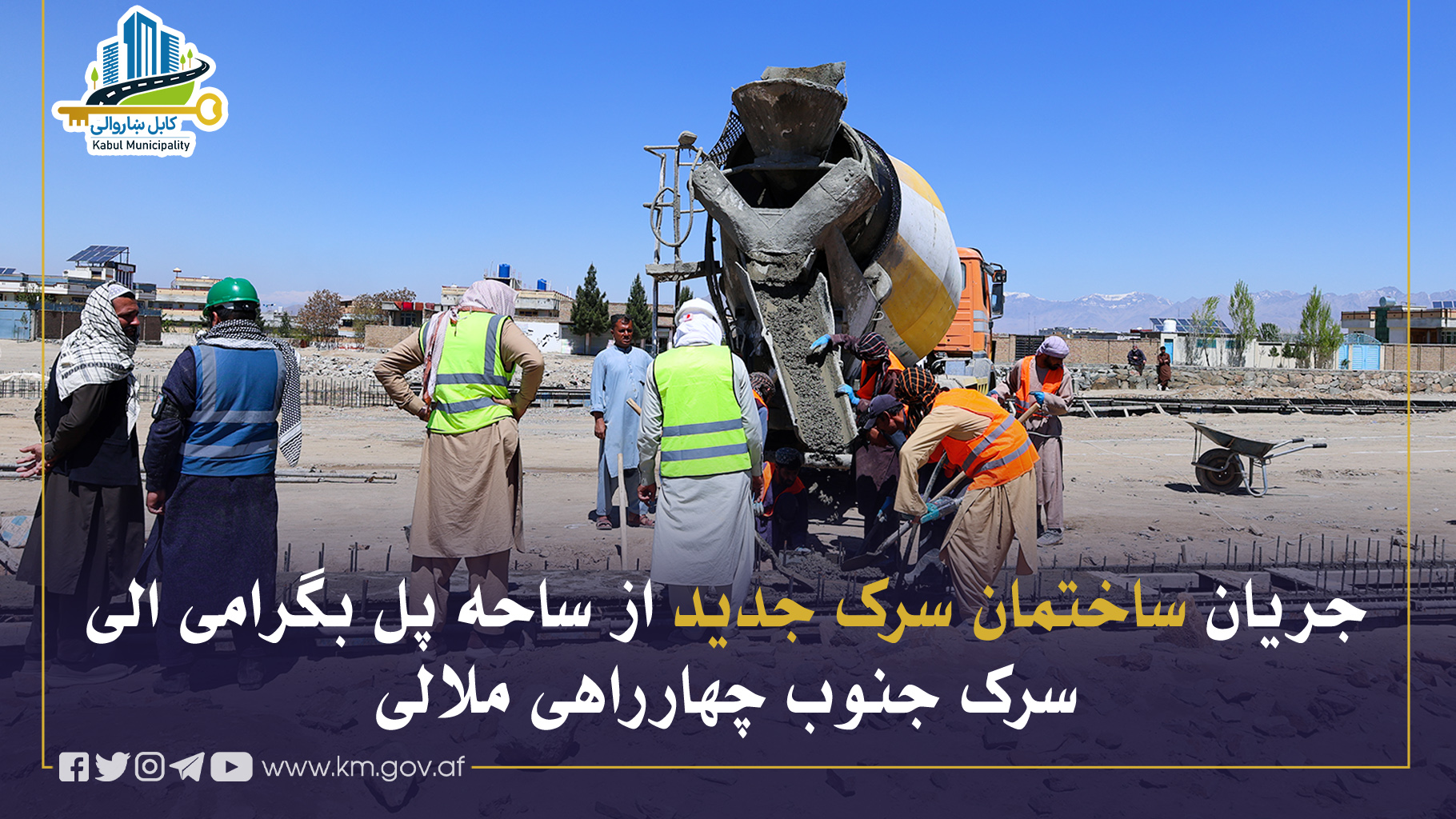 کارساختمان سرک جدید از ساحهٔ پل بگرامی الی سرک جنوب چهارراهی ملالی (چهارراهی بتخاک) در مربوطات نواحی هشتم و بیستودوم از سوی شاروالی کابل جریان دارد.