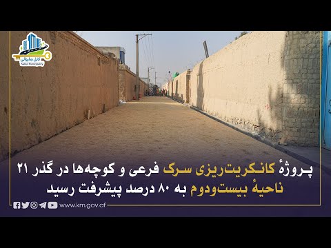 د دوه ویشتمې ناحیې په ۲۱م ګذر کې د فرعي سړک او کوڅو جوړولو چارې ۸۰ سلنه کاري پرمختګ لري